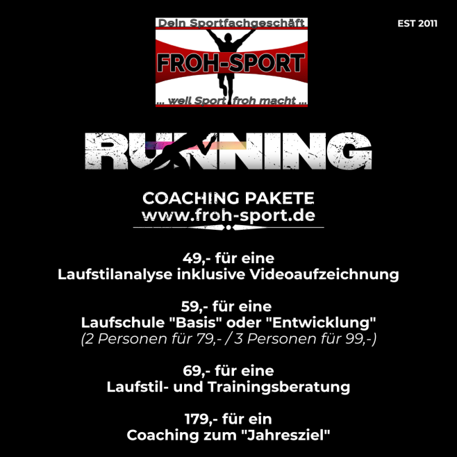 - 59,- für eine Laufschule "Basis" oder "Entwicklung" (2 Personen = 79,- / 3 Personen = 99,-)